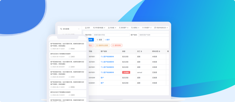 一鍵外呼,自動(dòng)進(jìn)行錄音上傳,錄音、通時(shí)通次直觀展示
